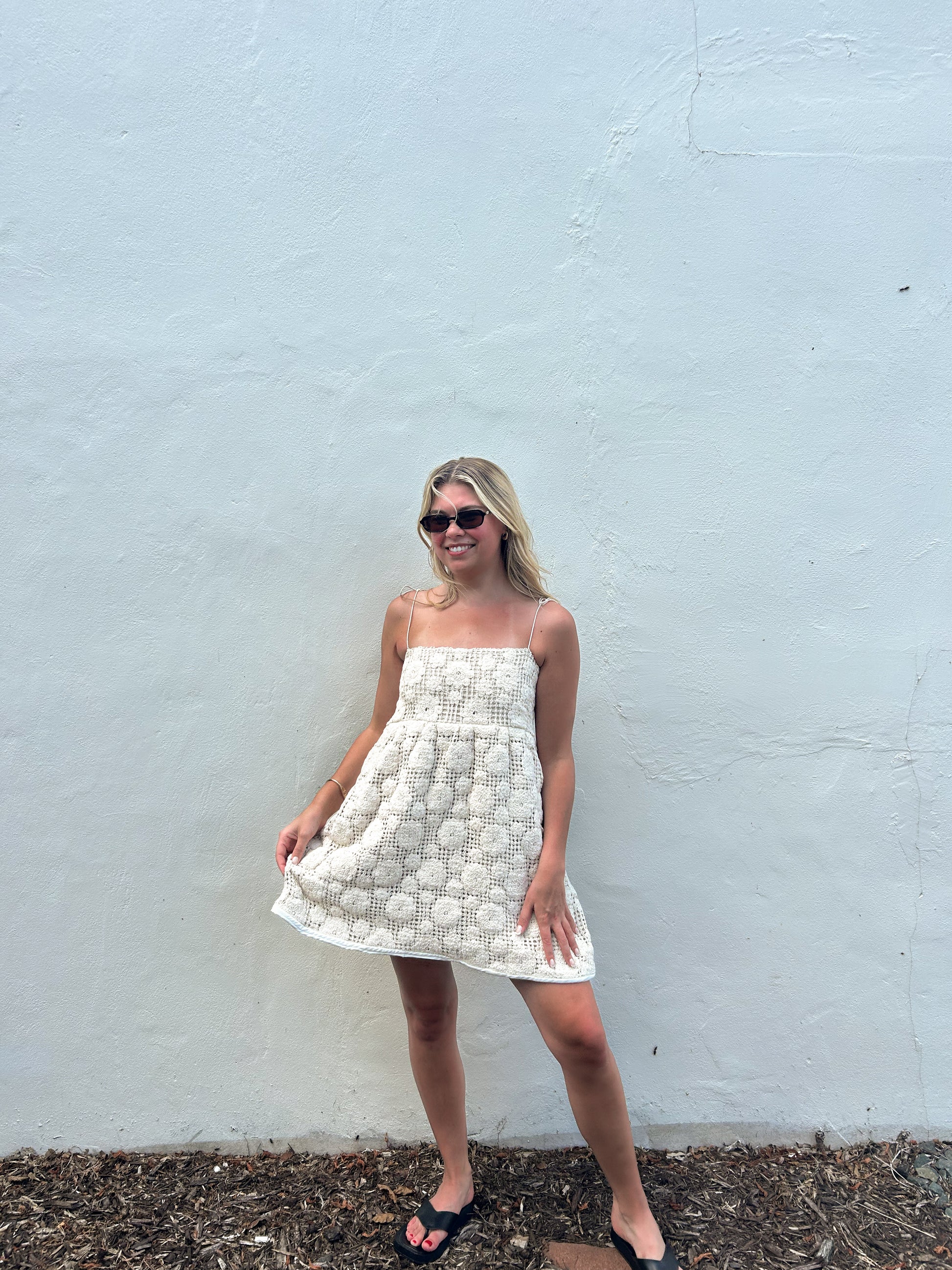 The Hayman tie dress was designed to feel like something you’ve held onto forever. Featuring an intricate floral crochet design that adds to our core difference of dimensional texture, each piece is handmade in the USA using high quality finishes. Tie-up shoulder straps allow you to adjust the length to suit your body.